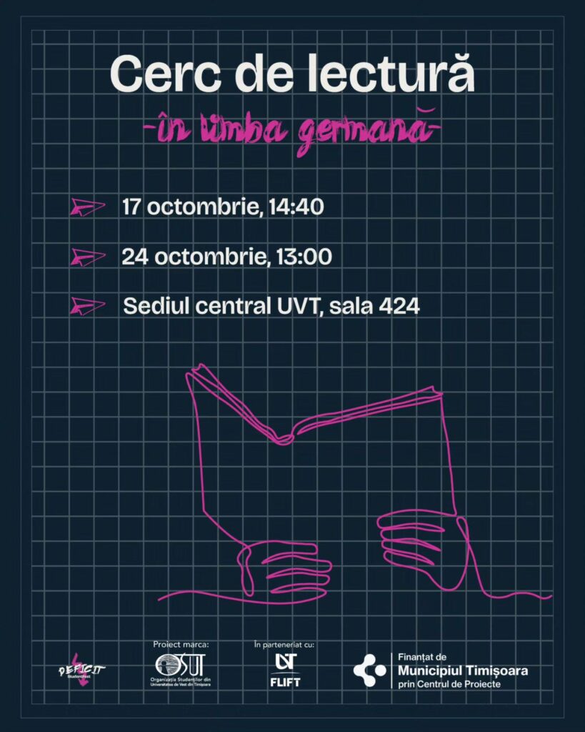 Descriere: În data de 17, respectiv 25 octombrie revenim împreună cu studenții și cadrele didactice de la FLIFT cu un cerc de lectură în limba germană.