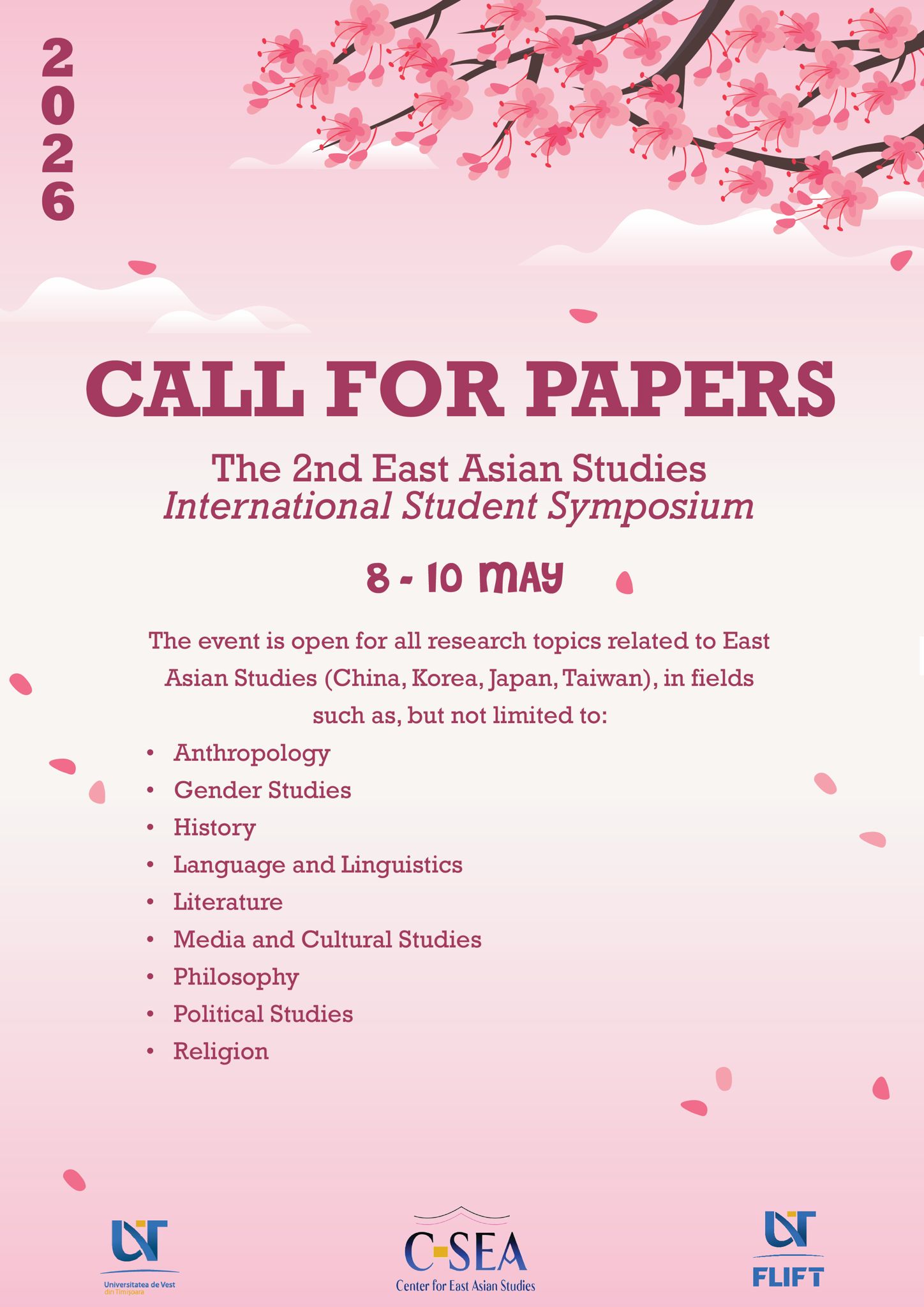 The Second Edition of the East Asian Studies Student International Symposium organizat by the Center for East Asian Studies at the West University of Timisoara, will take place May 8-10, online and in person, at the WUT.