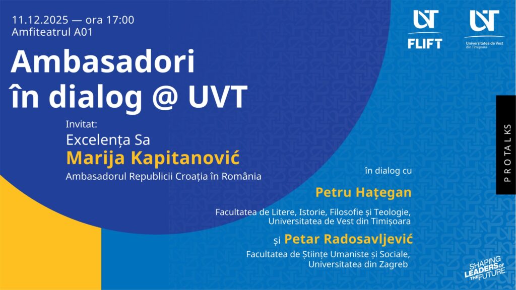 Un nou eveniment special din ciclul „Ambasadori în dialog @UVT”: Marija Kapitanović, Ambasadorul Republicii Croația în România, într-un dialog pe tema „Diplomație prin limbă și cultură”